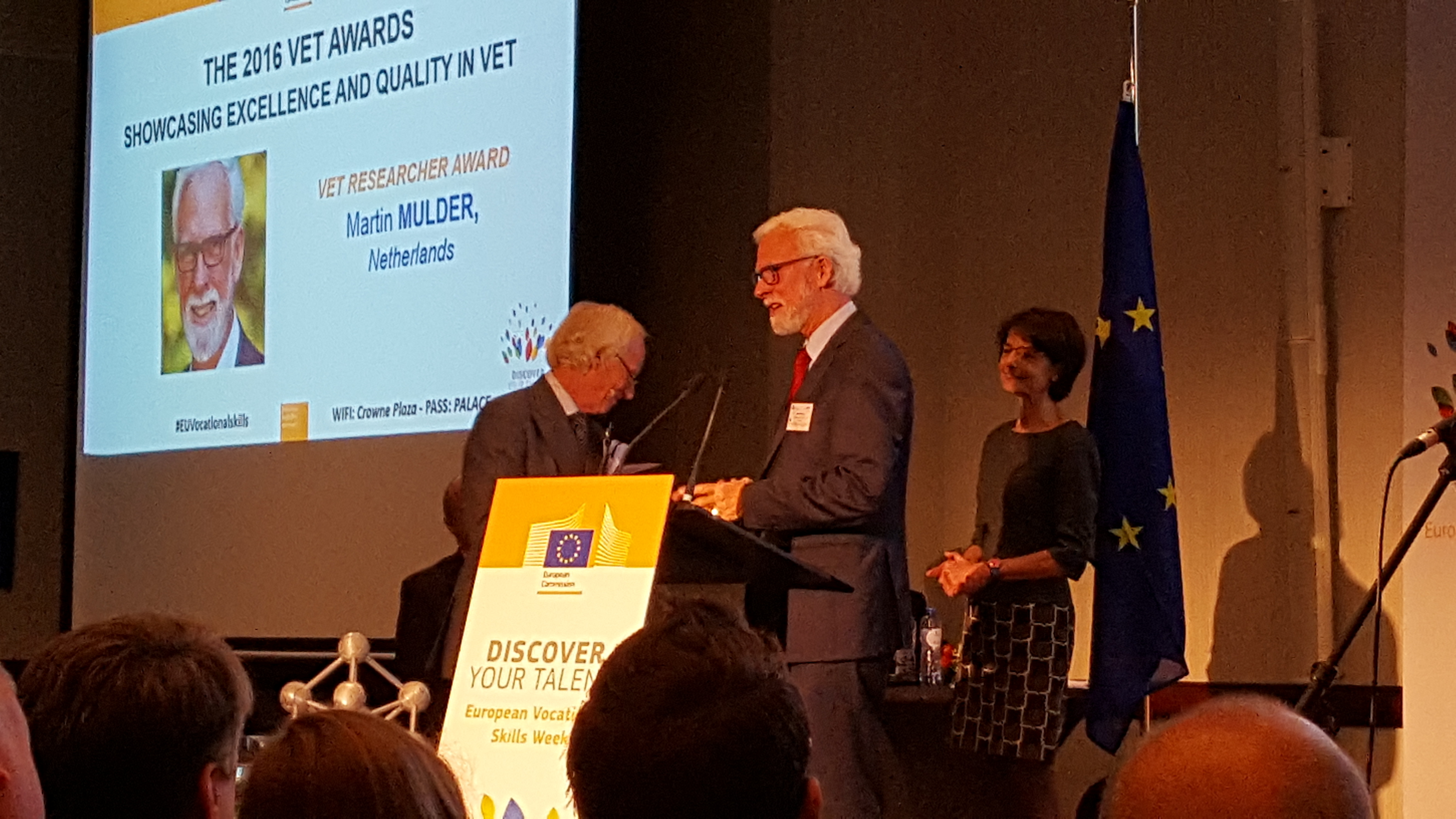 During the European Vocational Skills Week in Brussels on December 9, 2016, it was my honour to have received the VET Researcher Award, which was installed by the European Commission, for my life time achievement in VET research. The Award was presented by Marianne Thyssen, European Commissioner, Employment, Social Affairs, Skills and Labour Mobility. The European Vocational Skills Week is a new event, organized under the auspices of the European Commission. I am dedicating this Award to all Vocational Education and Training Researchers, Policy experts, Teachers and Students in Europe and beyond (pictures: René van Schalkwijk, with thanks).
