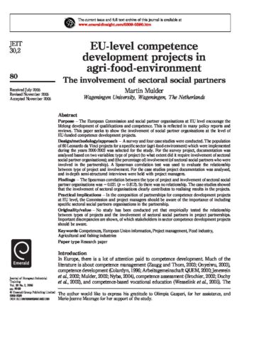 2006 Mulder – EU-level comp dev proj involv social parnters – JEIT