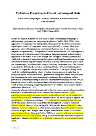 2015 Mulder – AERA – Competence and Context